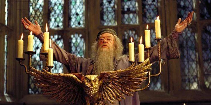 邓布利多带领全校师生演唱校歌(火焰杯)