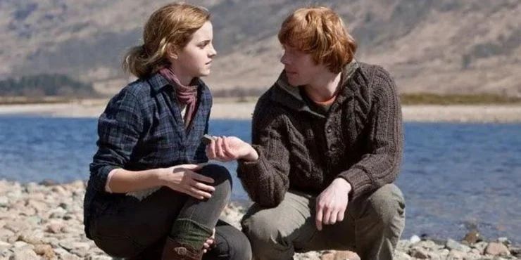 在《死亡圣器》上集中,有一个场景也是粉丝们很喜欢的,罗恩和赫敏在湖上跳石,他们在一起度过了一段美好的时光。
